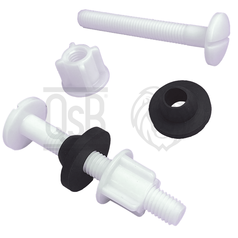 Características: Ideal para sujetar el asiento a la taza del sanitario. El empaque contiene dos tuercas.